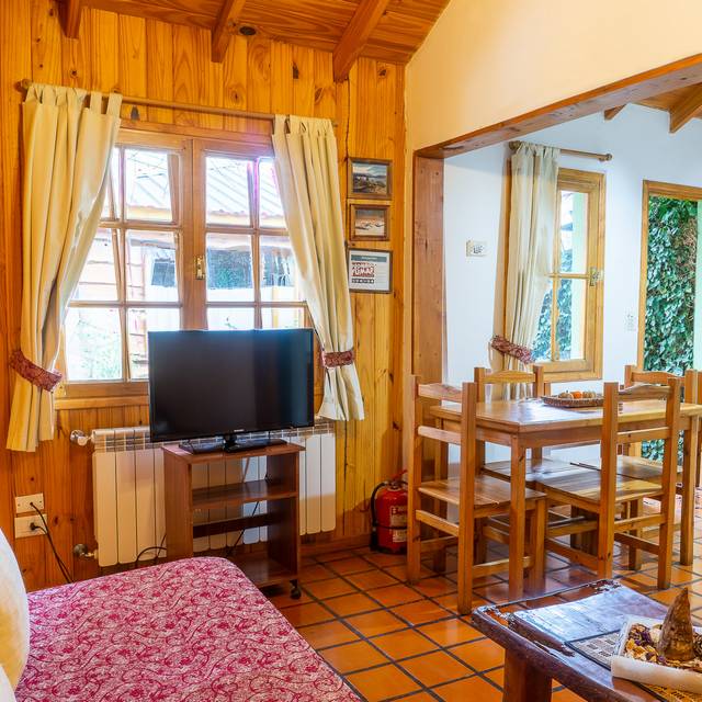 - Hogar a leña. -Cocina totalmente equipada para 4 personas (microondas, heladera, cafetera eléctrica, artefacto de cocina con 4 hornallas y horno tradicional, vajilla y mantelería).